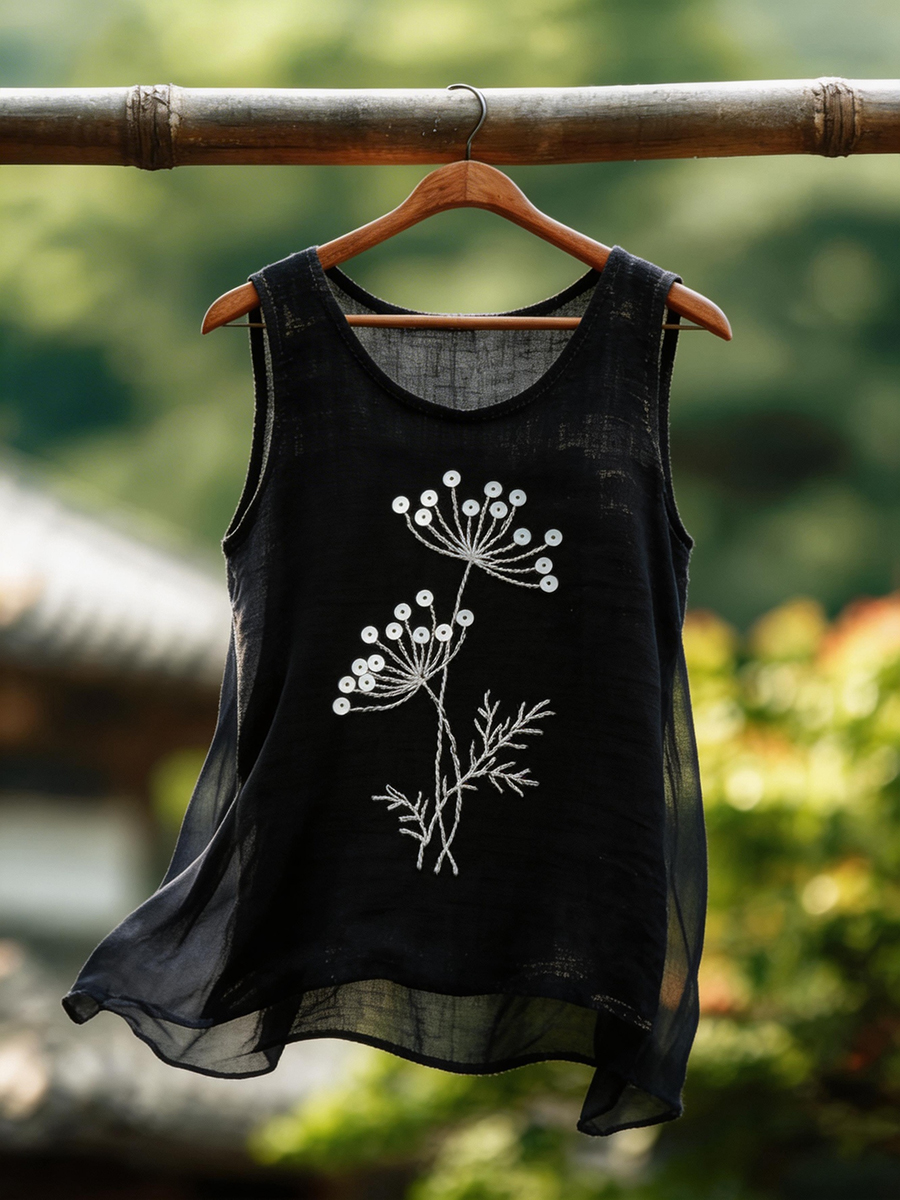 Gilet di lino semplice vintage da donna
