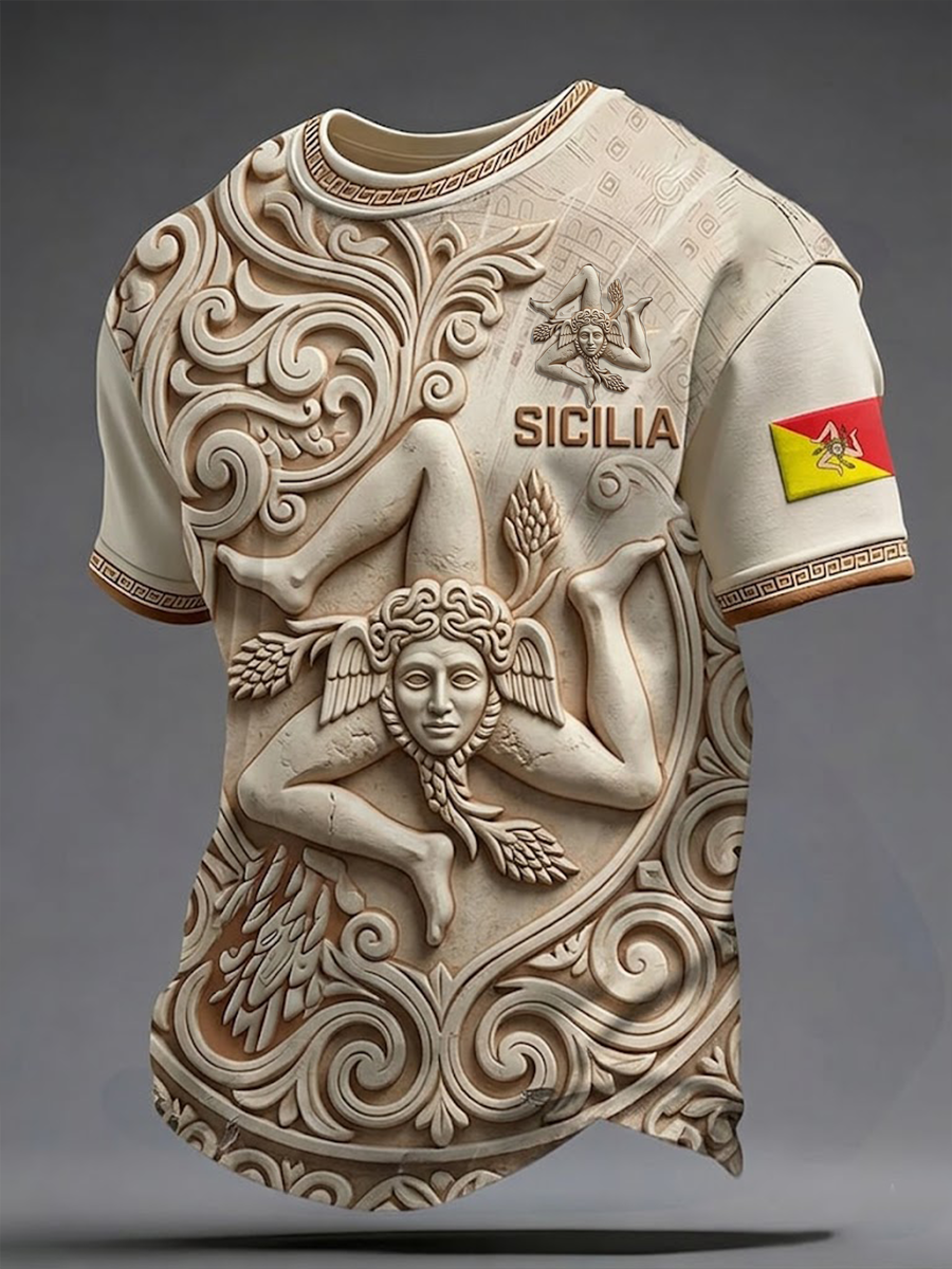 T-shirt da uomo Sicilia Trinacria a maniche corte