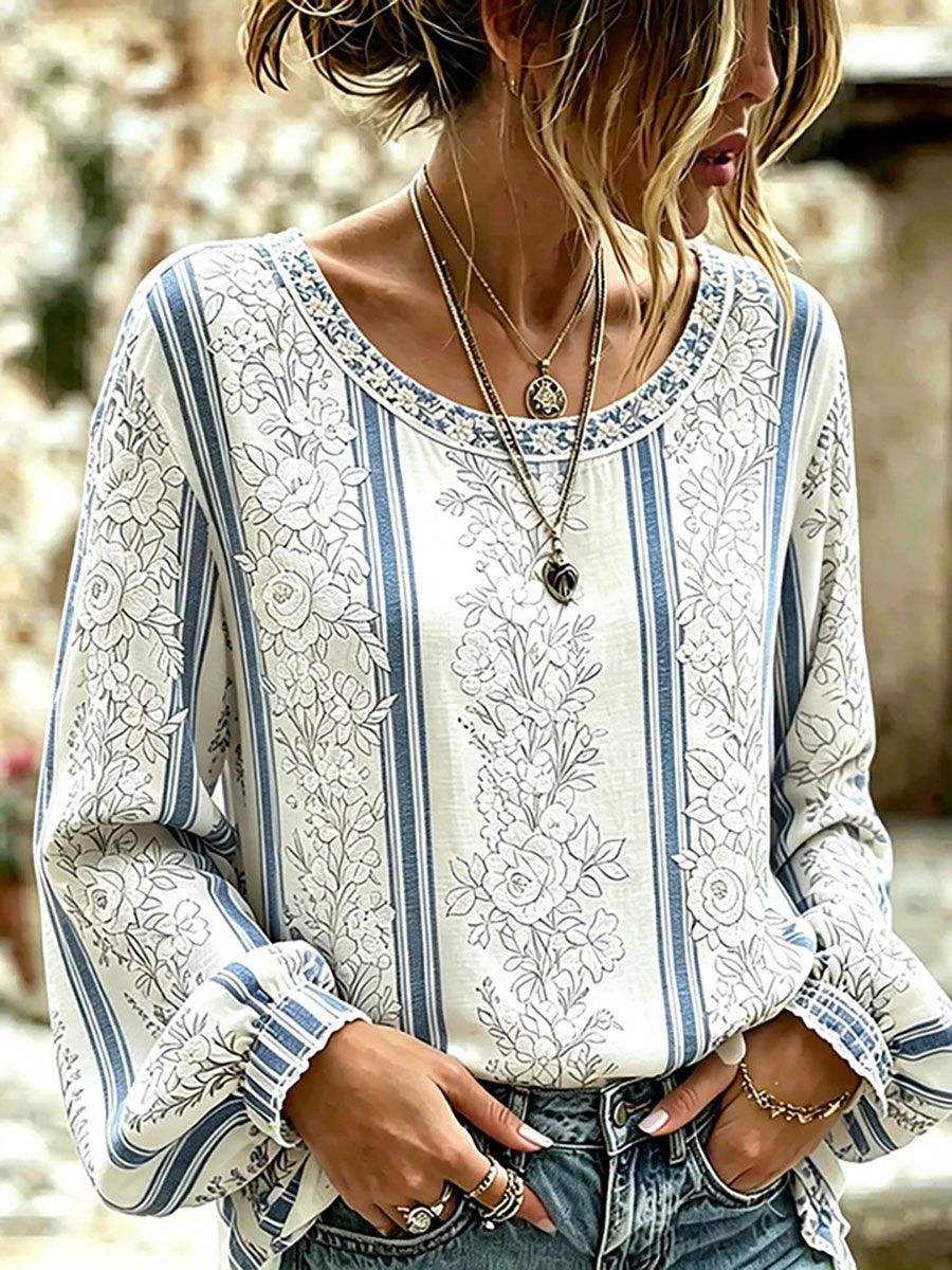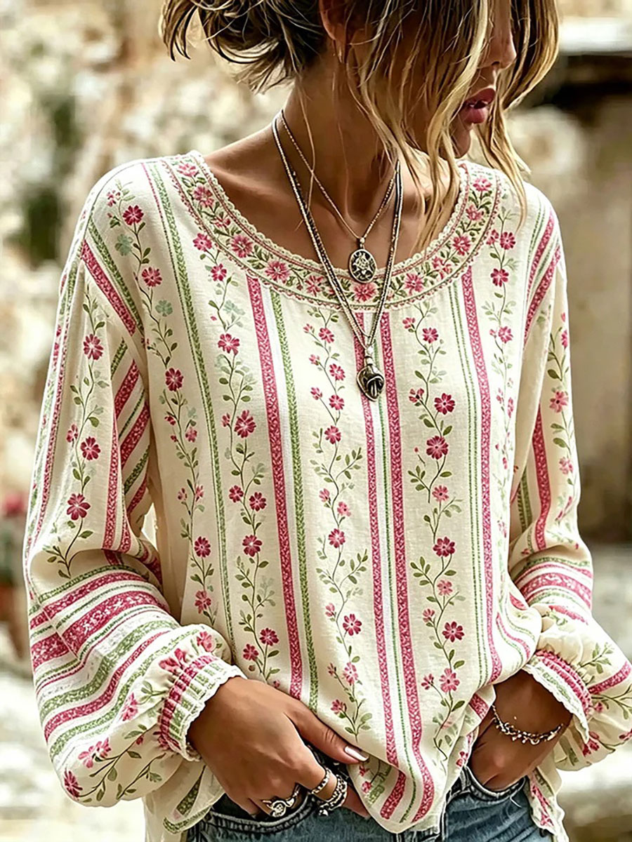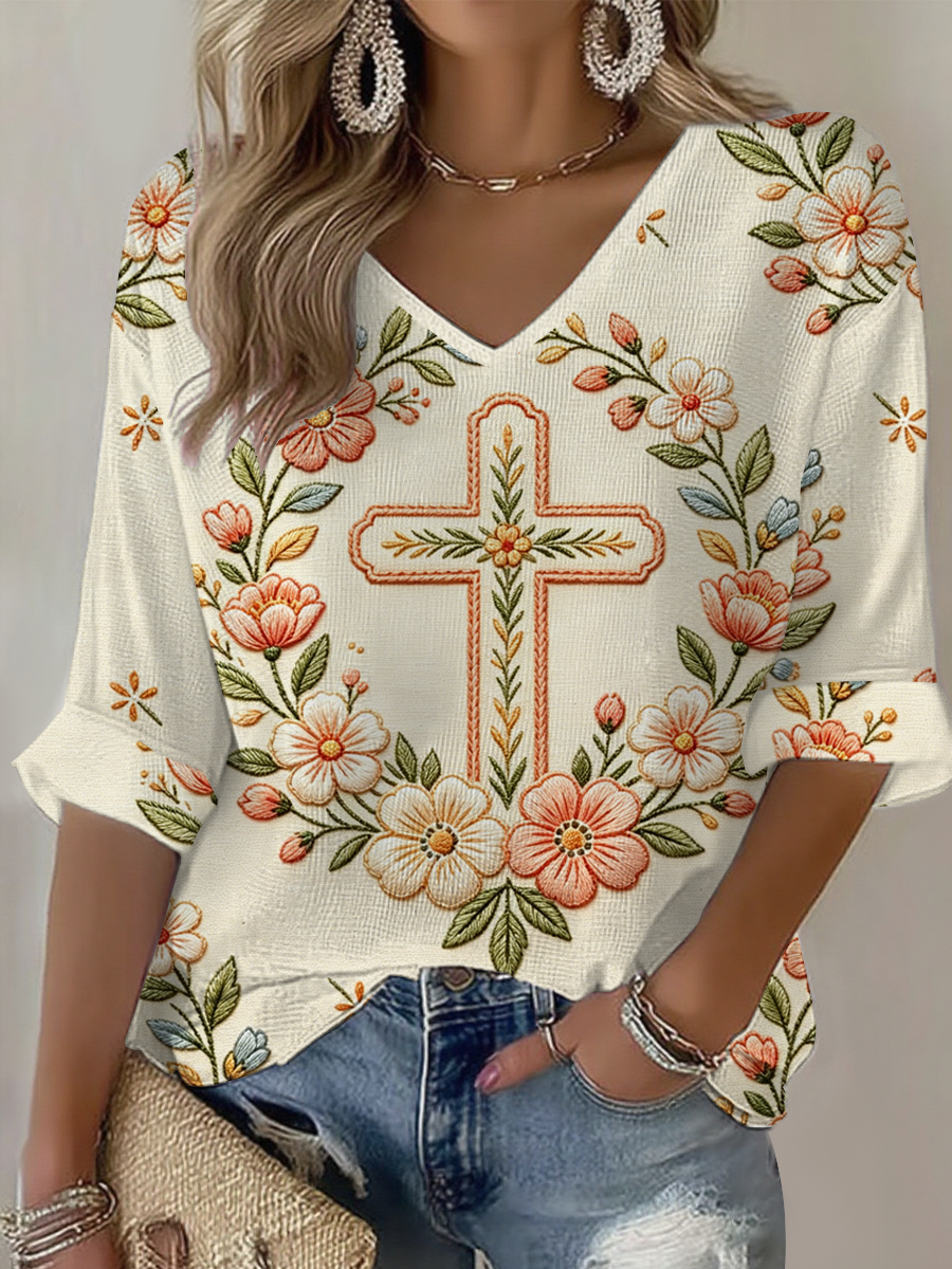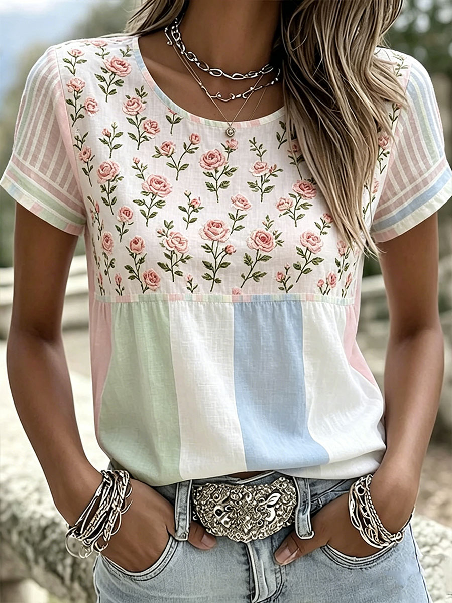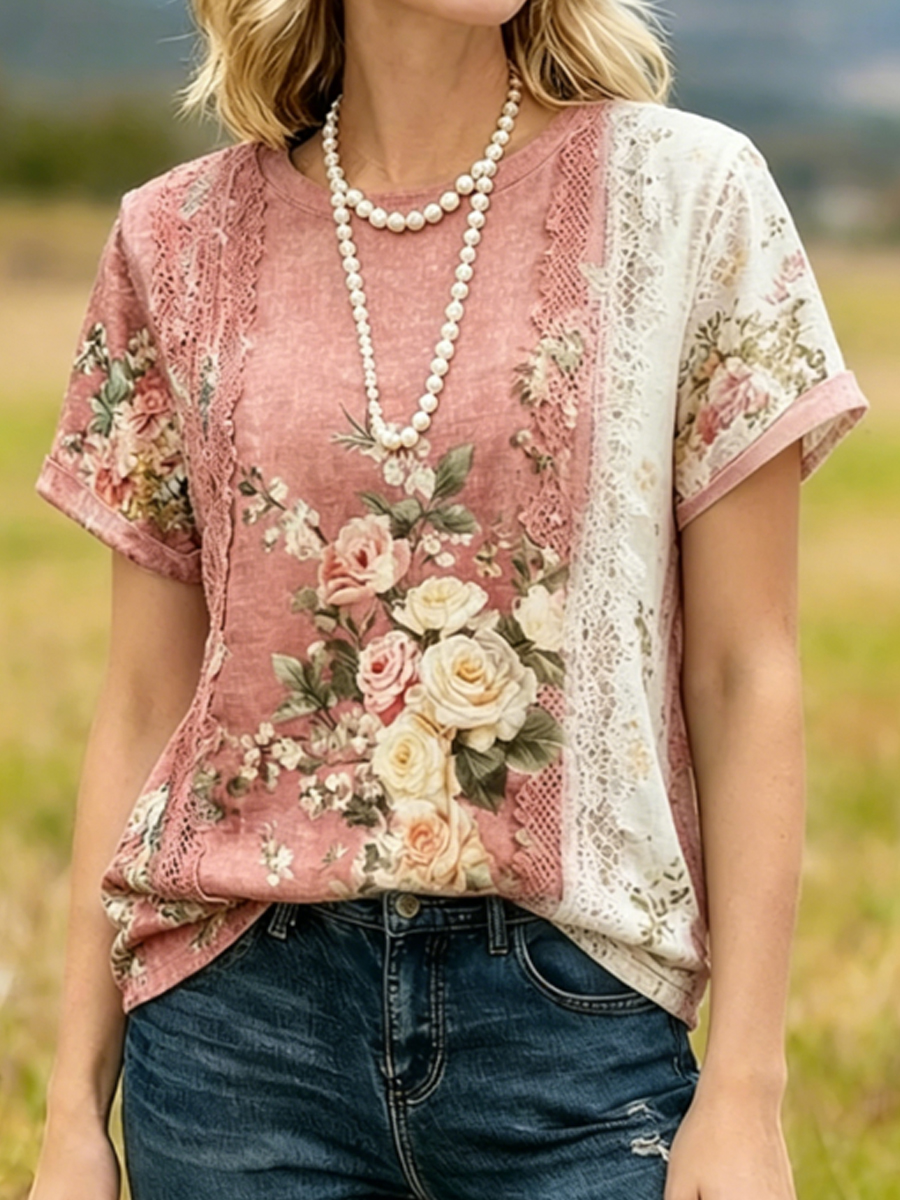 T-shirt casual con stampa floreale da donna