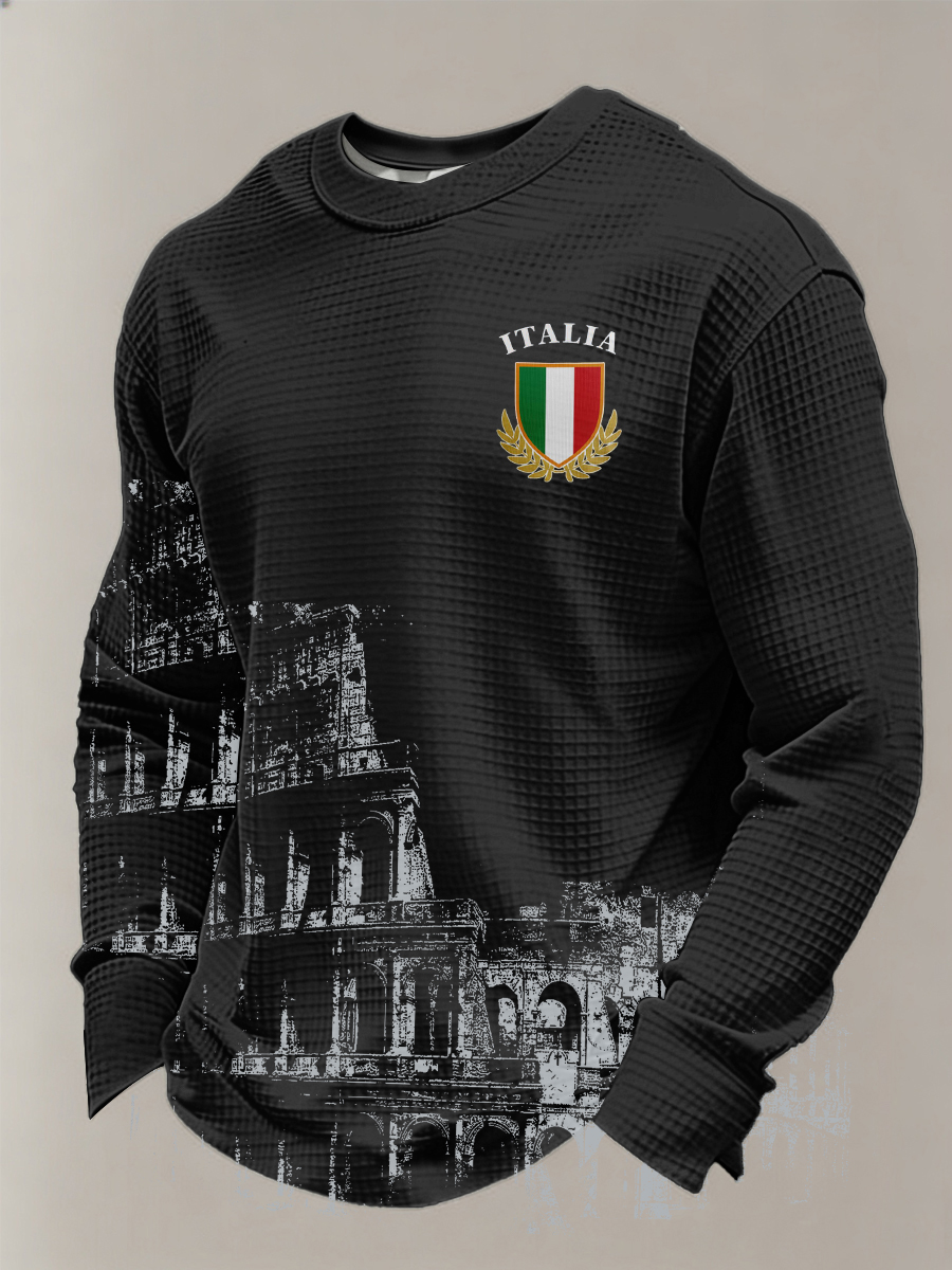 Maglietta Uomo Italia Rugby Waffle Manica Lunga