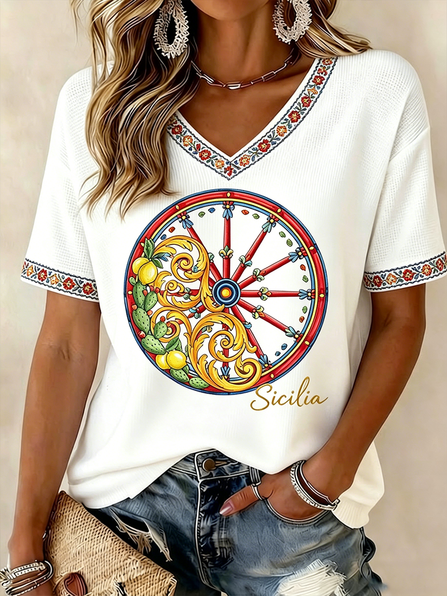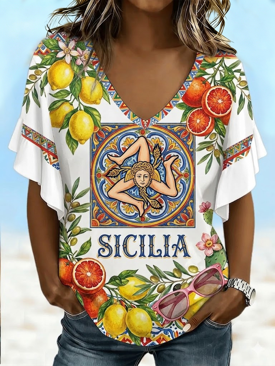 Maglietta Donna Sicilia Trinacria con scollo a V