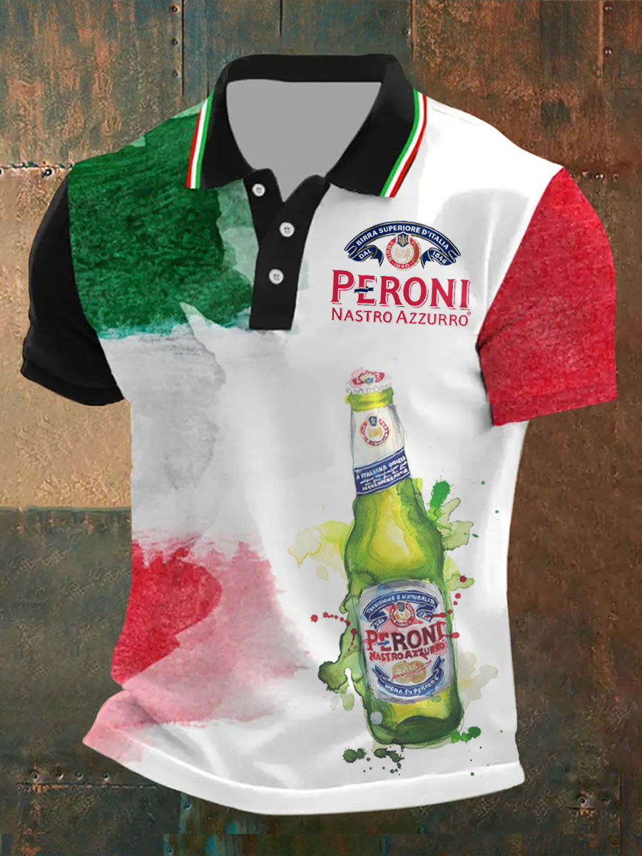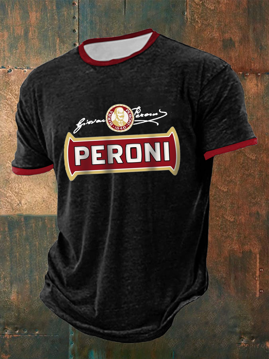 T-shirt da uomo a maniche corte con stampa della birra Peroni