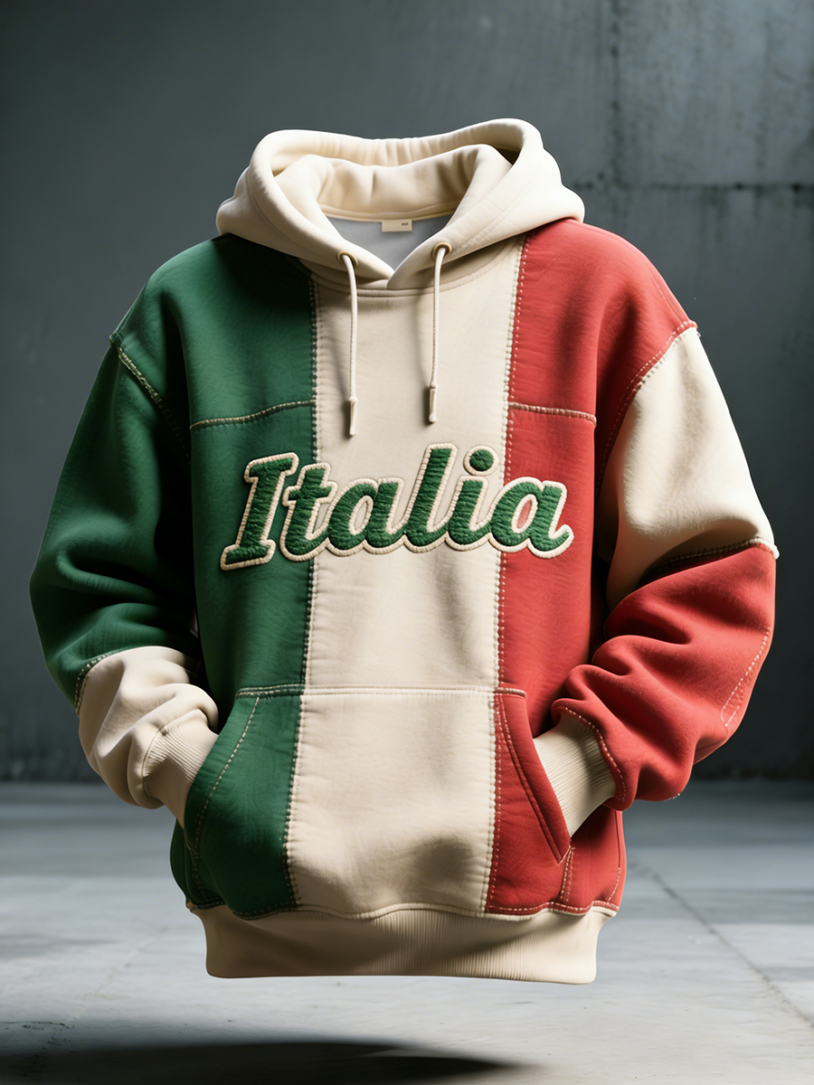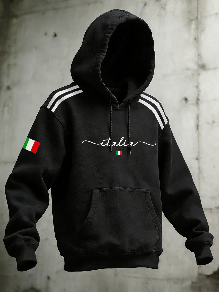 Felpa con cappuccio con stampa italiana ispirata da uomo