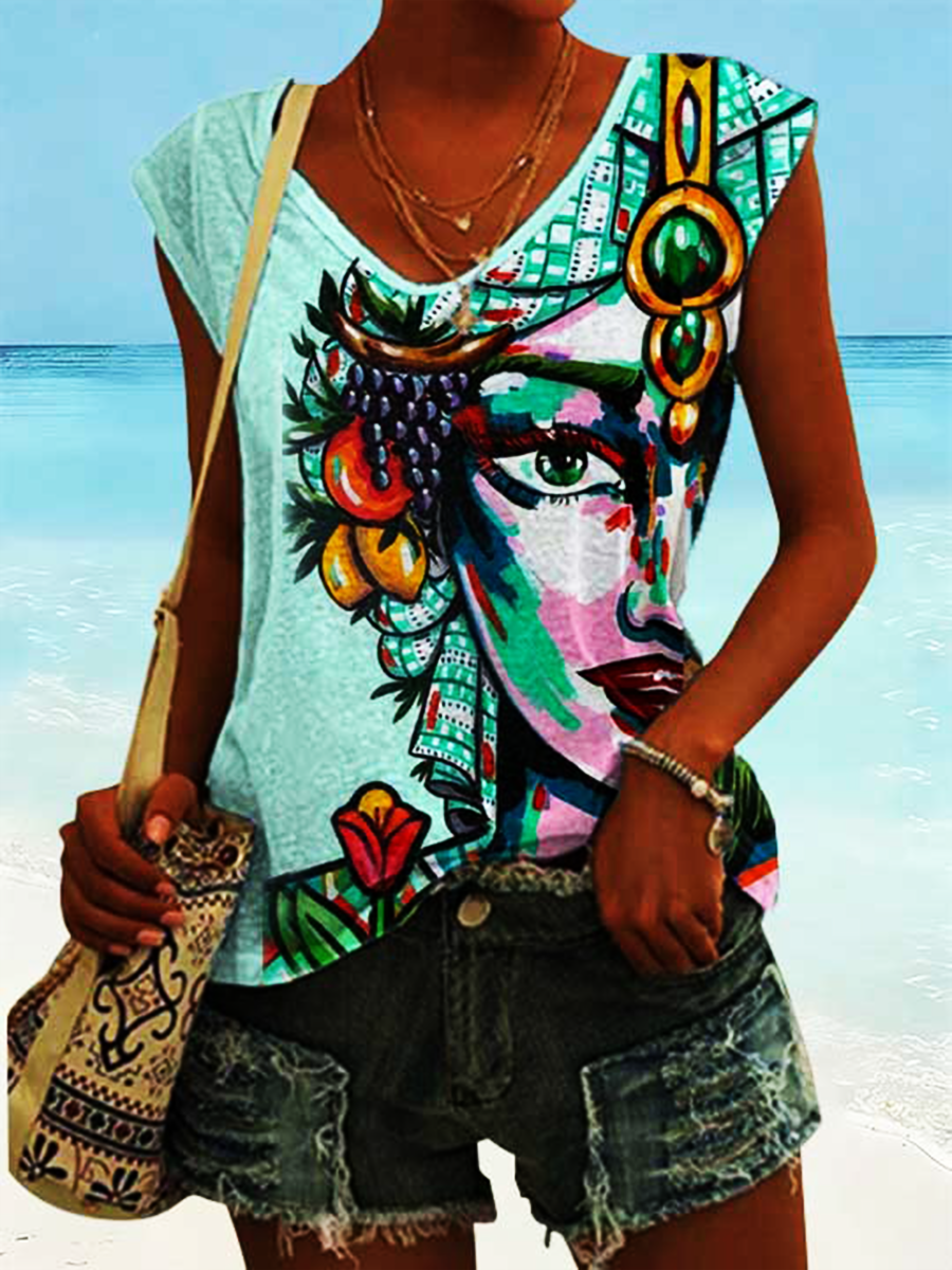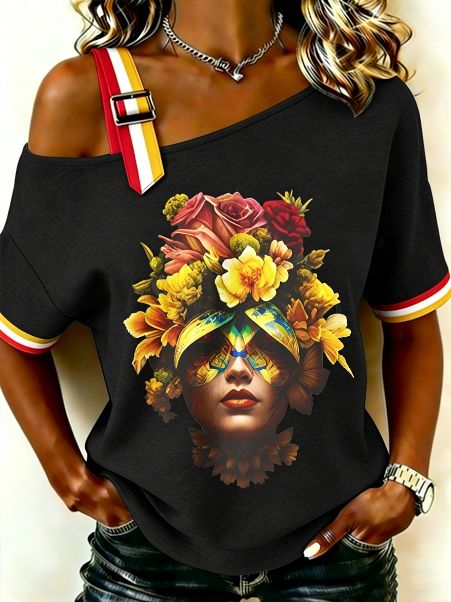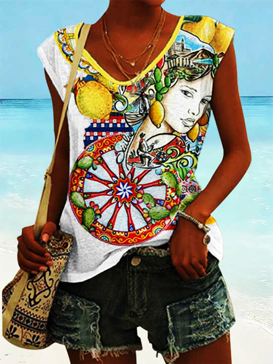 T-shirt da donna Sicilia Teste di Moro a spalle scoperte con maniche corte