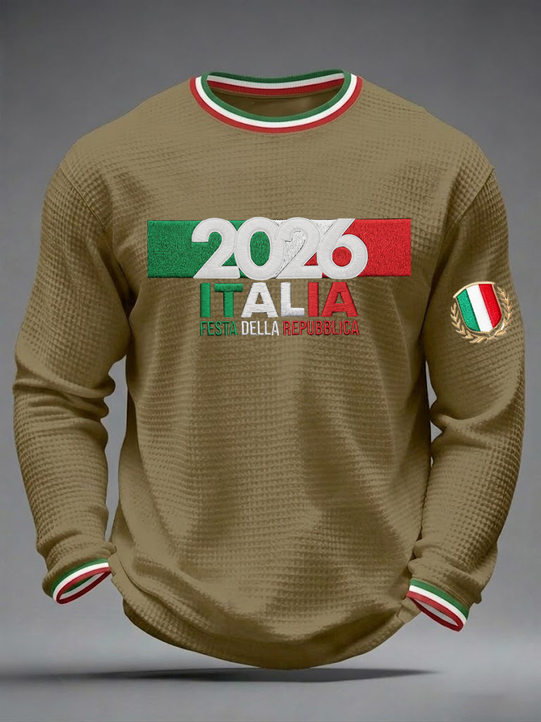 Festa Della Repubblica da Uomo Repvbblica Italiana Felpa a Manica Lunga Stampa Waffle