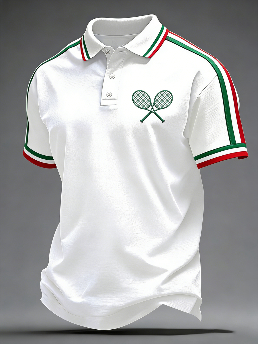 Top casual da uomo con stampa italiana da tennis