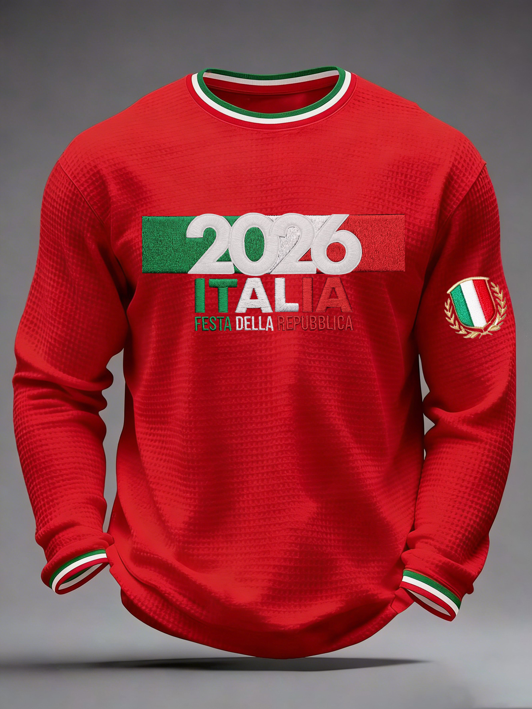 Festa Della Repubblica da Uomo Repvbblica Italiana Felpa a Manica Lunga Stampa Waffle
