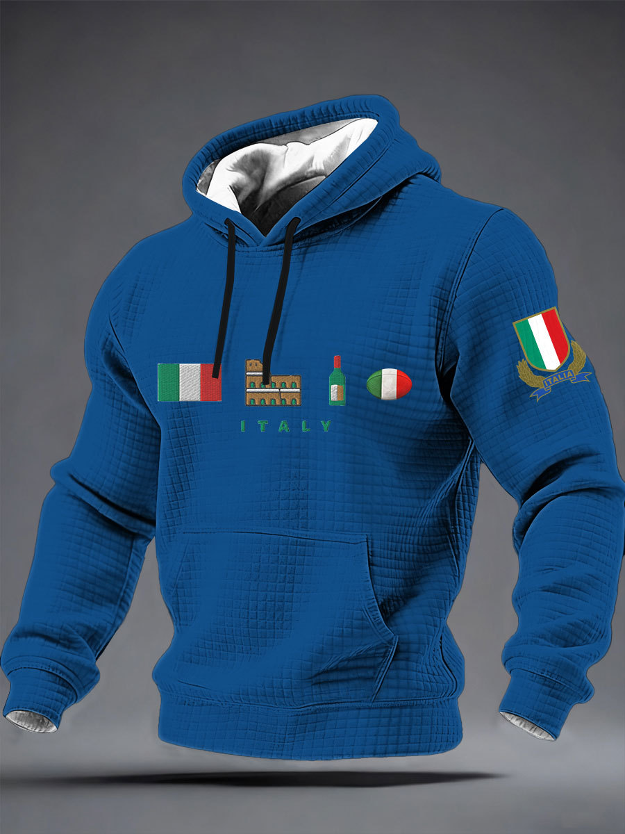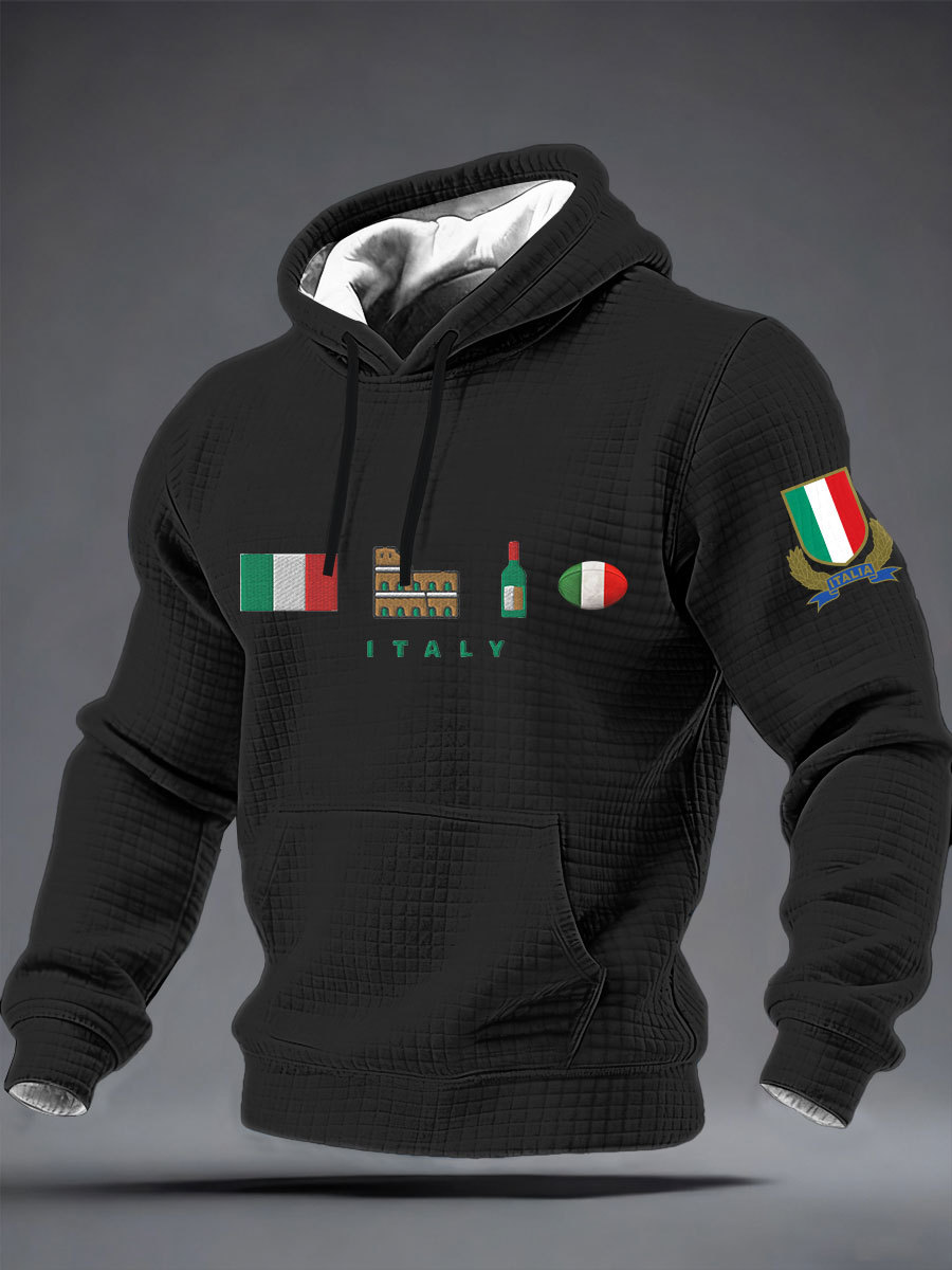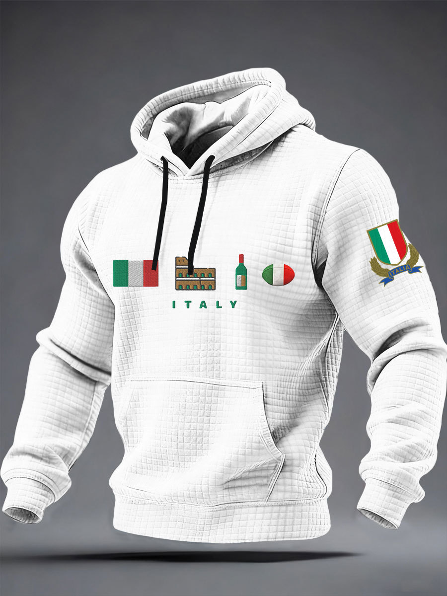 Felpa con cappuccio in cotone a scacchi Italia rugby maschile