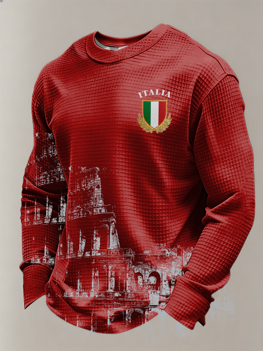 Maglietta Uomo Italia Rugby Waffle Manica Lunga