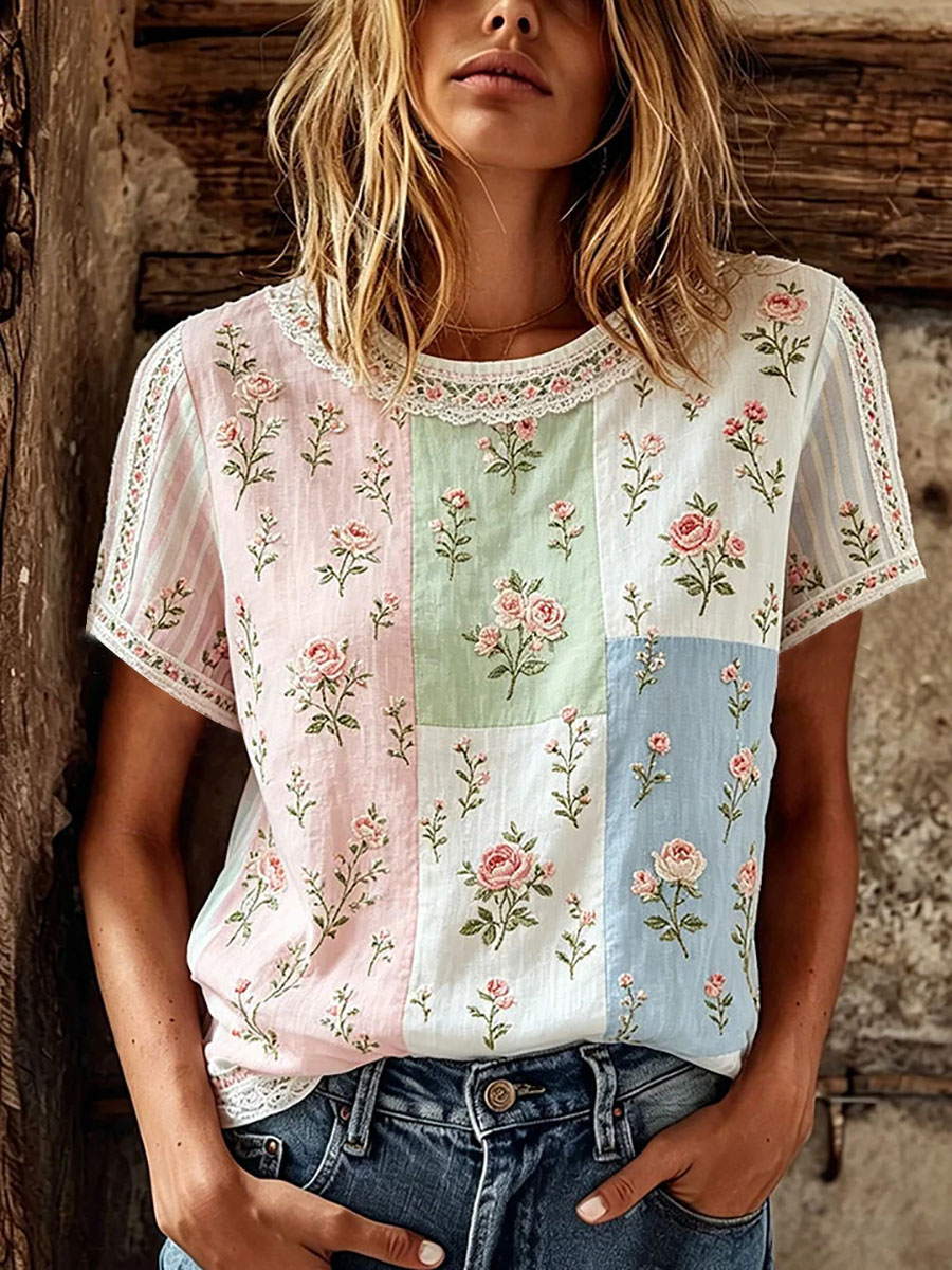 T-shirt casual da donna con stampa floreale