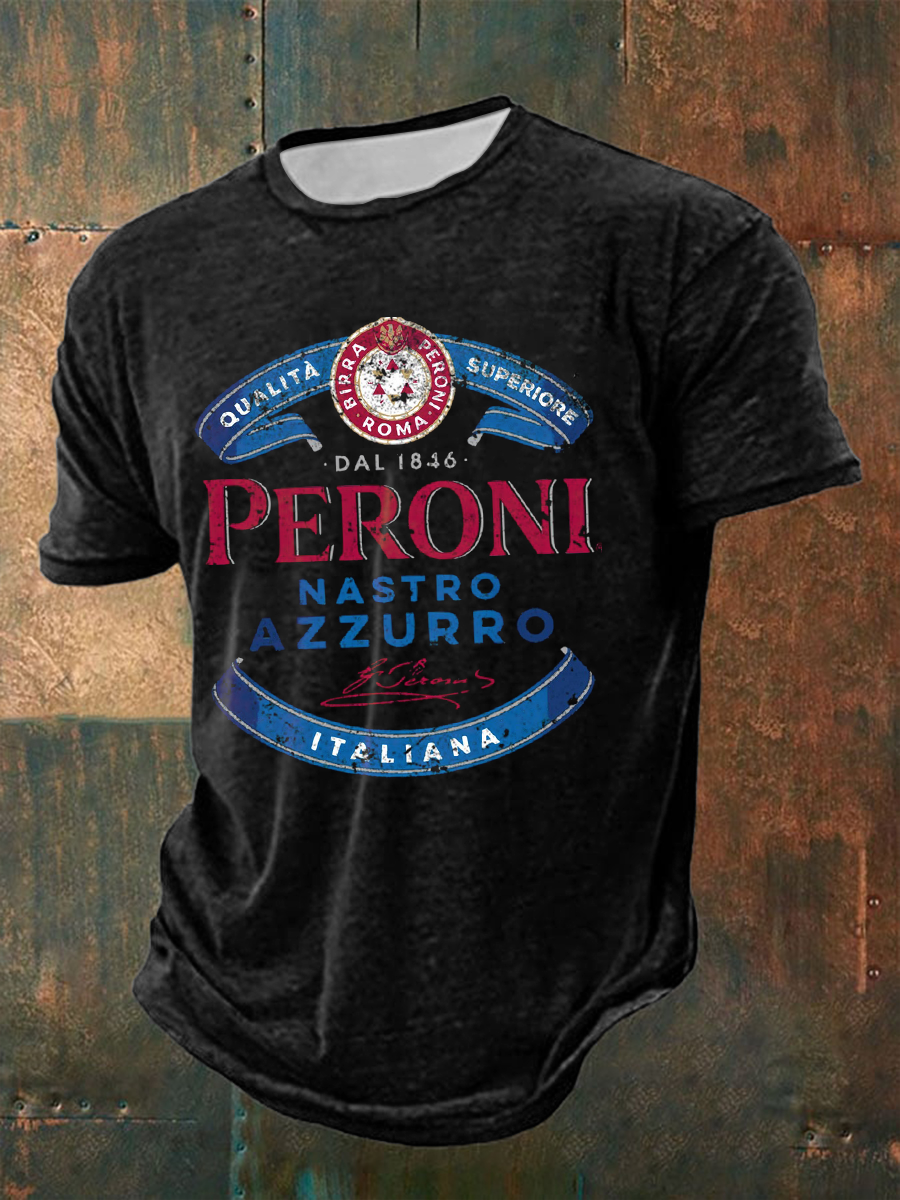 T-shirt da uomo a maniche corte con stampa della birra Peroni